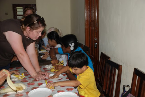 Meanwhile, in the kitchen, Lauren, Susan, and Melissa were herding children around with a 13 year age span trying to introduce them to what we call "independent living skills" the skills one needs to be successful alone in the world, like cooking. For most of the kids they worked with, this was the first time they had really ever been asked to take responsibility for their own food and its preparation. If you could have seen the looks on their faces as they brought their "American food" to their parents, it was truly beautiful. You could see the feeling of accomplishment in their faces, and the pride in their steps.